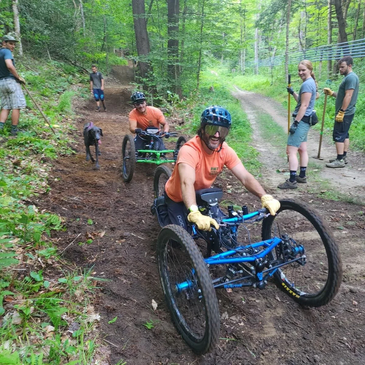 Are you excited about new trails in our region? The Driving Range is a new build, completed in the spring of 2024. These trail are not only all adaptive-friendly, they are progressive, fun and feature filled. We are grateful for the donors and volunteers who made this new network possible. Donate in support of these trails and the on-going maintenance needed to keep them riding fine!